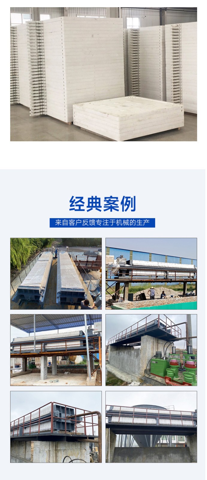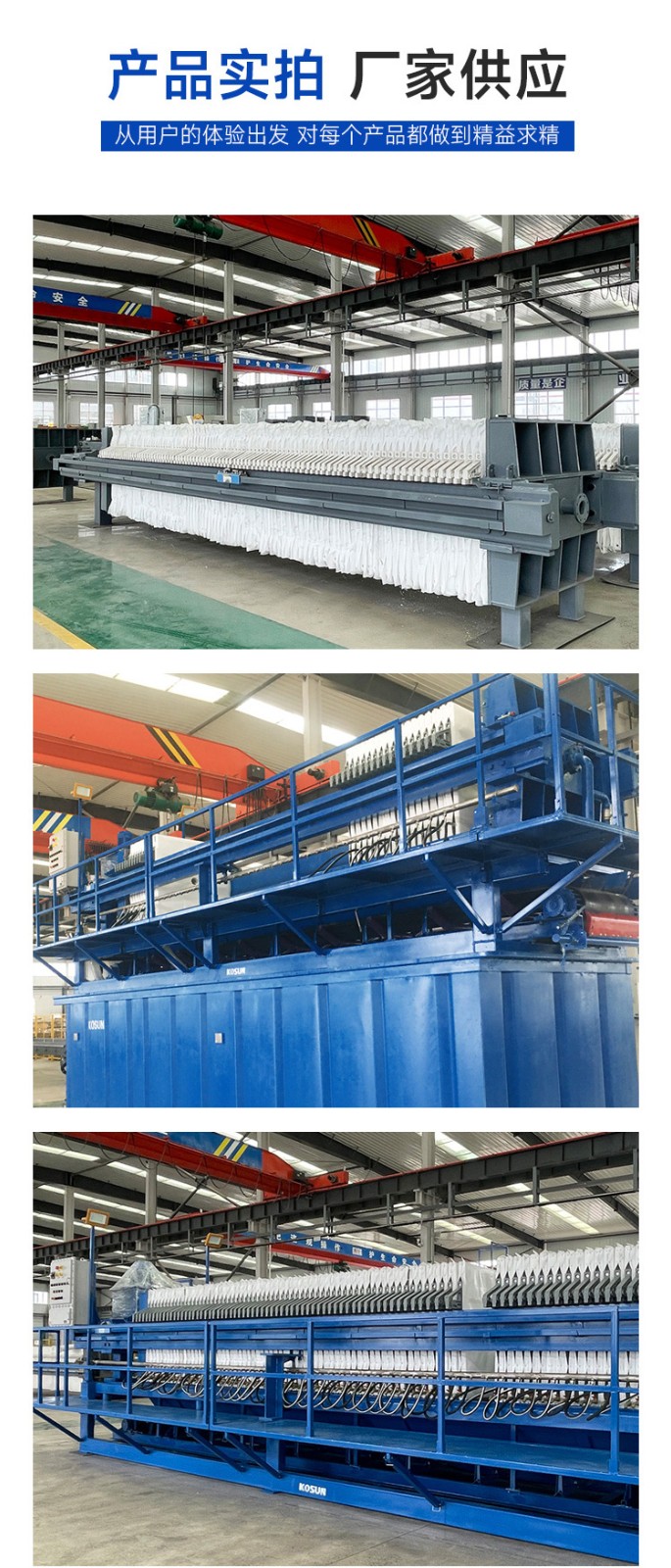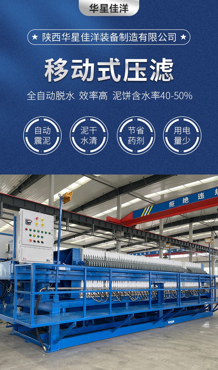 板框壓濾機由交替排列的濾板和濾框構(gòu)成一組濾室。濾板的表面有溝槽,其凸出部位用以支撐濾布。濾框和濾板的邊角上有通孔,組裝后構(gòu)成完整的通道,能通入懸浮液、洗滌水和引出濾液。板、框兩側(cè)各有把手支托在橫梁上,由壓緊裝置壓緊板、框。板、框之間的濾布起密封墊片的作用。由供料泵將懸浮液壓入濾室,在濾布上形成濾渣,直至充滿濾室。濾液穿過濾布并沿濾板溝槽流至板框邊角通道,集中排出。過濾完畢,可通入清洗滌水洗滌濾渣。洗滌后,有時還通入壓縮空氣,除去剩余的洗滌液。隨后打開壓濾機卸除濾渣,清洗濾布,重新壓緊板、框,開始下一工作循環(huán)。