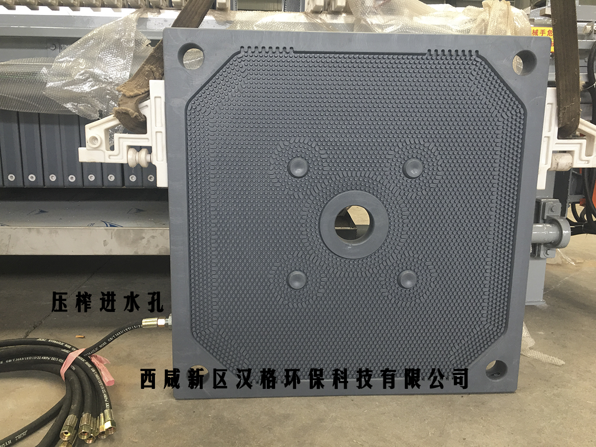 隔膜濾板下方有出液孔,與濾板兩側(cè)的圓孔相通,解決濾液排放問題