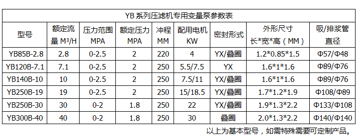 該泵主要配合壓濾機(jī)使用,獨(dú)特的液壓回路設(shè)計(jì),特別適合壓濾機(jī)在固液分離方面的應(yīng)用。該泵能夠自動(dòng)控制輸出流量且能保證設(shè)定壓力,根據(jù)過濾物料設(shè)定一個(gè)壓力值,當(dāng)壓力升到設(shè)定值時(shí)壓力停止上升,此時(shí)泵的流量能在零到大之間根據(jù)壓濾機(jī)實(shí)際需要自動(dòng)切換單泵運(yùn)行或雙泵運(yùn)行,并保持設(shè)定壓力不變,故用此泵給壓濾機(jī)進(jìn)料升壓時(shí)間短,保壓過濾功率低,壓力波動(dòng)小,節(jié)約時(shí)間提高效率,相比其他壓濾機(jī)進(jìn)l料泵節(jié)能30%。相比離心泵、螺桿泵、轉(zhuǎn)子泵,該泵有以下優(yōu)勢:壓力功率小,磨損小壽命長,有可調(diào)恒溫的功能,維修費(fèi)用僅為離心泵、螺桿泵、轉(zhuǎn)子泵的十分之一,為用戶降低了使用成本減少了電能消耗。